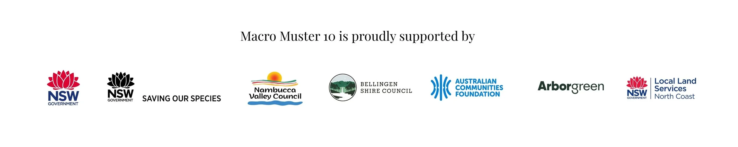 Macro Muster 10 is proudly supported by the Department of Climate Change, Energy, the Environment and Water and its Saving our Species Program, Bellingen Shire Council, Nambucca Valley Council, the Australian Communities Foundation, Arborgreen and North Coast Local Land Services. Learn more